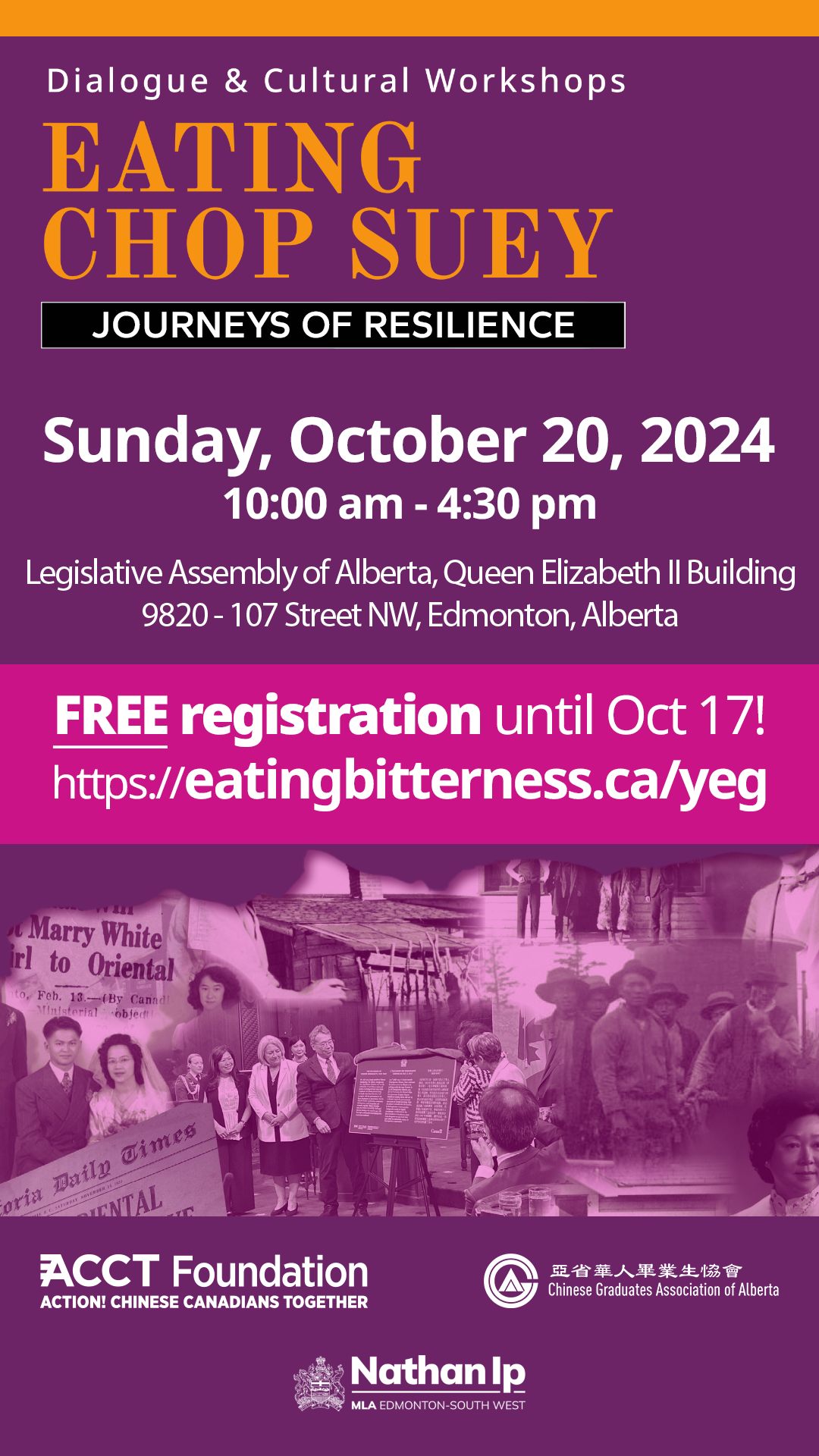 Register today at https://eatingbitterness.ca/yeg for our FREE community event, Eating Chop Suey, a day of dialogue, conversation, cultural workshops, and sharing stories of resilience.