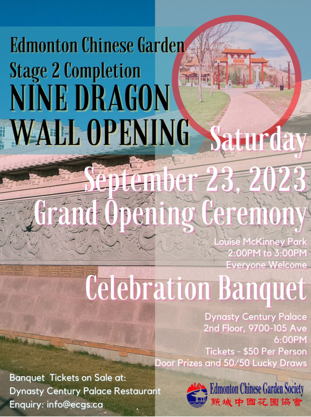 Celebration Banquet at 6:00 pm at Dynasty Century Palace (2nd Floor, 9700 – 105 Ave). Tickets are $50 per person. Door prizes and 50/50 lucky draws will be there! Tickets can be purchased at Dynasty Century Palace.
