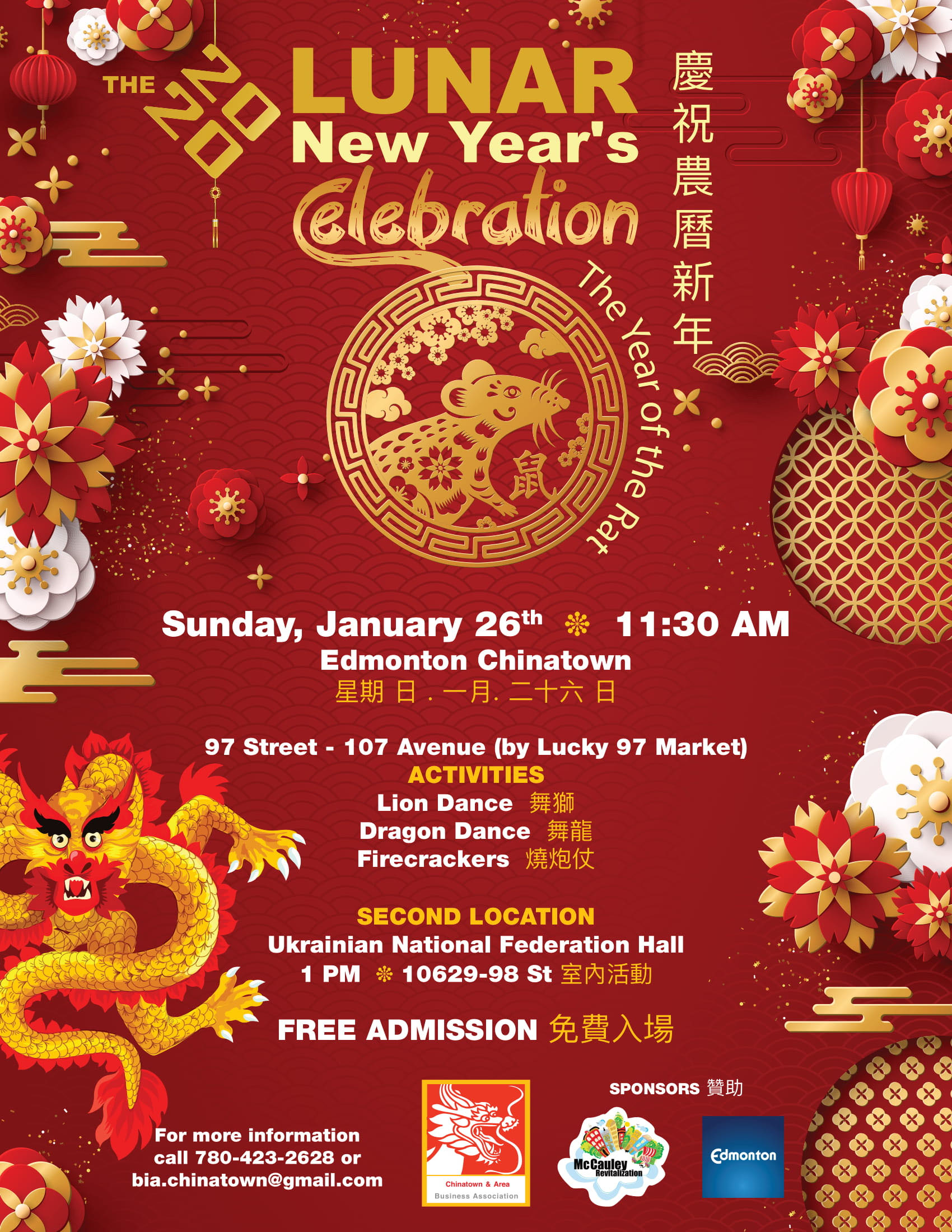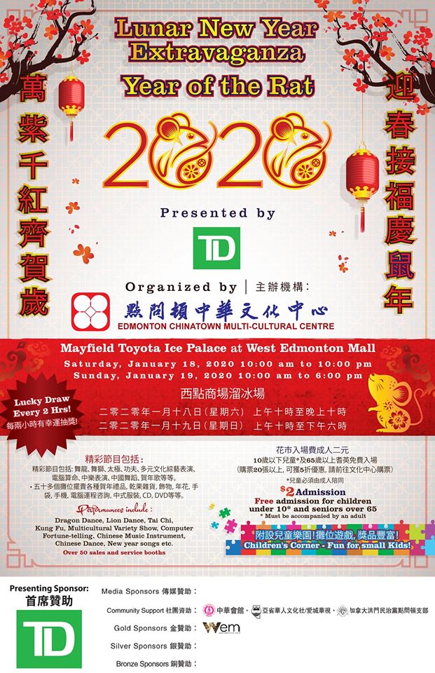 Dynasty Century Palace Restaurant 206, 9700 105 Avenue NW, EdmontonPresented by Jing Ying Martial Arts SAVE THE DATE! 🙌 - our annual Chinese New Year Party is coming up soon! We have many exciting performances to show everyone! DATE: Saturday January 11th, 2020 (Year of the Rat) TIME: 6:00pm (event starts at 6:30pm) LOCATION: Dynasty Century Palace (9700 105Ave) PRICE: $40 per person