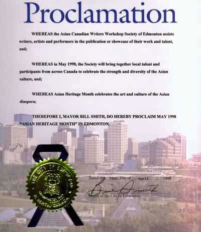 the (then) Asian Canadian Writer's Workshop Society of Edmonton, and